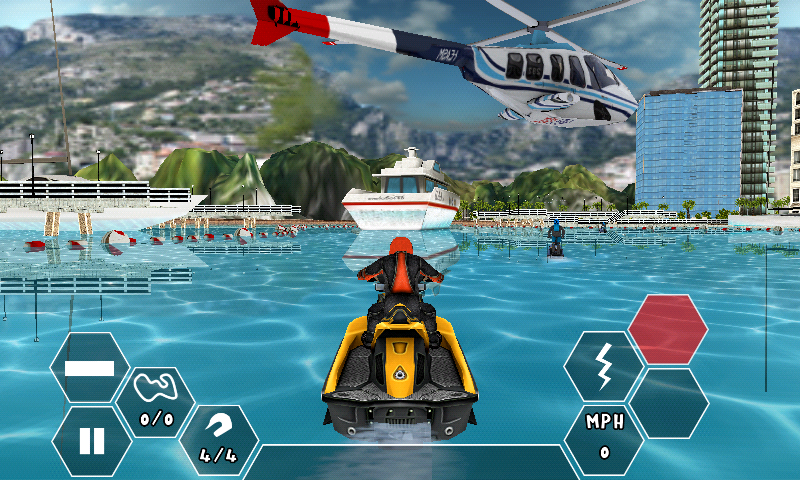 Choose one of available Jet Skis and become a king of the speed. Compete with AI or your friends in 3 beautiful sceneries of Monaco, Australia and California. 4 game modes: Single Race, Championship, Time Attack and Local Multiplayer will test your skills and deliver tons of fun.