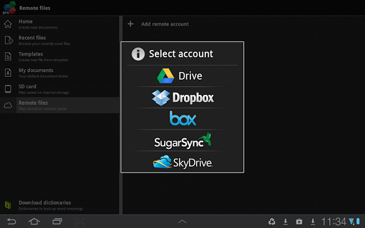 OfficeSuite Pro includes a File Browser and integration with Cloud service leaders: Box, DropBox, Google Drive, SkyDrive and SugarSync to give users a multitude of options on how to manage files and attachments.